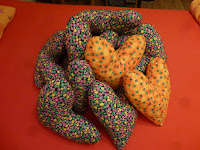 Gaby und ich fahren zu Nana nach Brokdorf. Ein sonniger Samstag und wir sind total gespannt. Wunderbar, einige Frauen sind schon mit ihrer Handarbeit beschäftigt. Sticken , nähen mit der Maschine oder Hand.......alles ist vertreten. Karen näht emsig "Herzkissenhüllen" und Nana hat wunderschöne Farben vernäht die nun zu einer großen Decke angeordnet werden sollen! Gar nicht so einfach, so??? Oder so oder oder??? Das Ergebniss wird ein "Traum"!